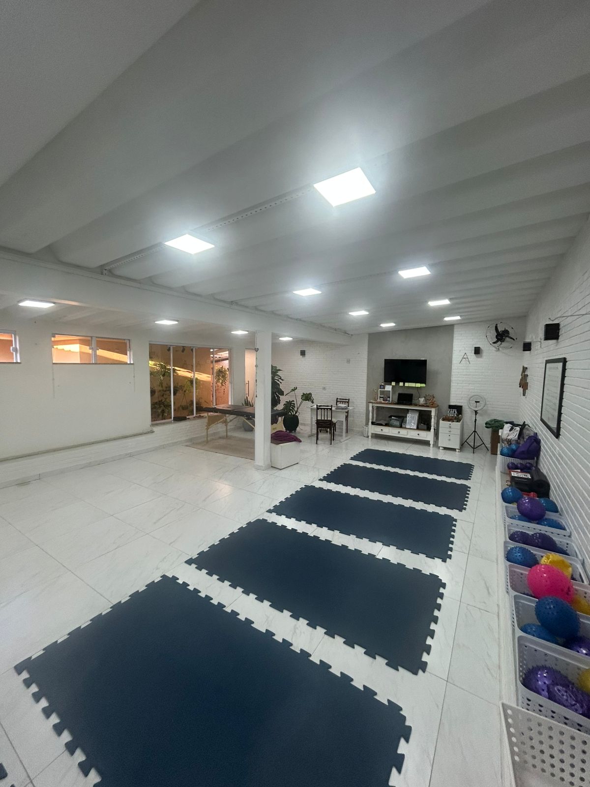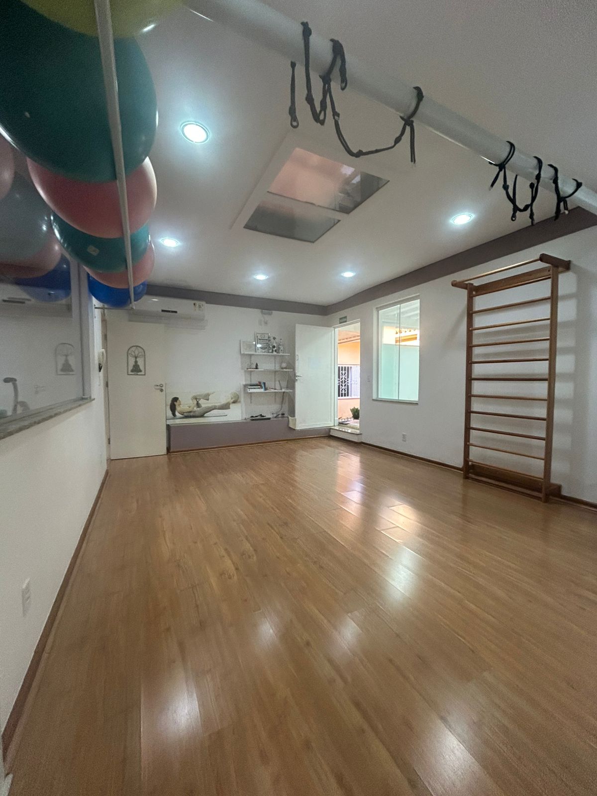 Ambiente amplo, organizado e acolhedor para aulas de Pilates e terapias corporais.